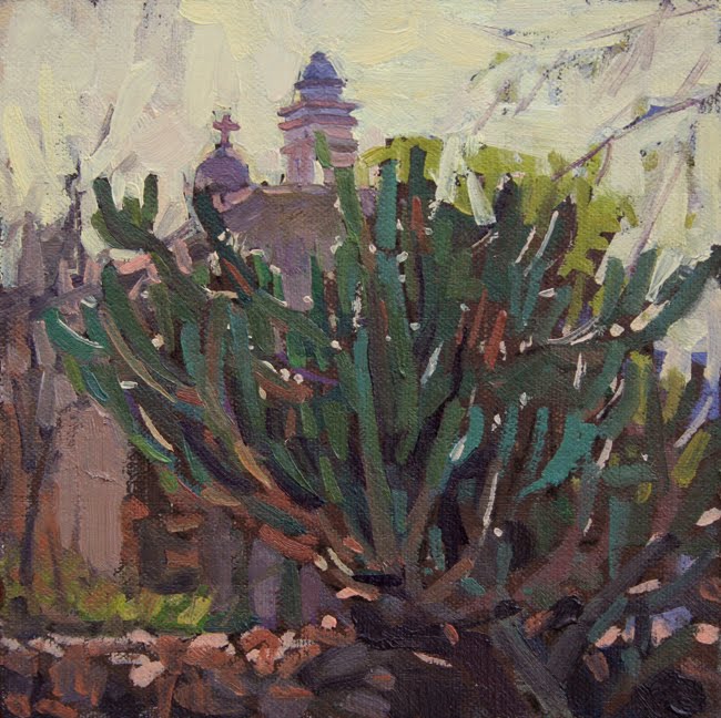 "Cactus and Capilla" 6x6" oil on linen panel, Frank Gardner © 2010