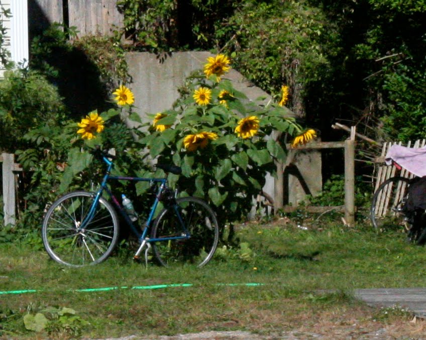 One day while looking for a painting spot in Wellfleet, I came across a scene of a bike parked under a large sunflower. I didn't set up to paint it, but I felt like there was something very interesting about it, so I snapped a picture for later reference.