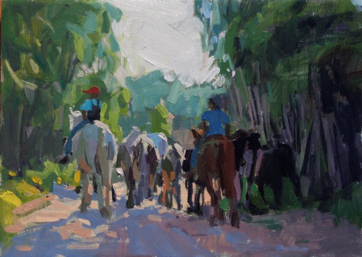 I really like the color and light in this one. It's going to end up being a larger painting. Feels like a lazy evening walking slowly into the setting sun.